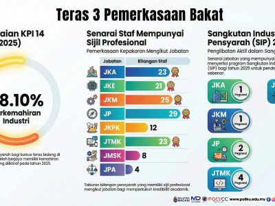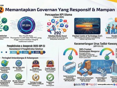 Sepanjang tahun 2025, Politeknik Kuching Sarawak (PKS) telah mempamerkan prestasi institusi yang cemerlang, konsisten dan berimpak tinggi merangkumi tadbir urus, akademik, pemerkasaan... Read More